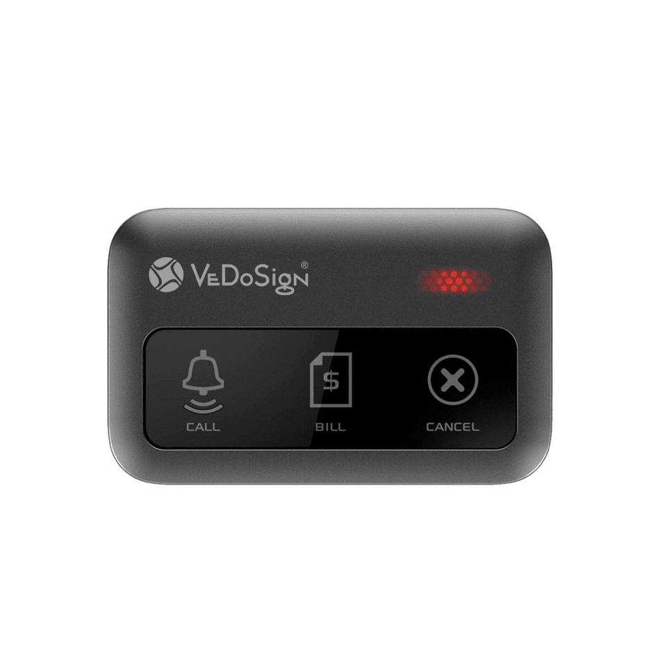Deze multifunctionele serviceknop premium met een fraai ontwerp is uitgerust met drie functietoetsen. Met de eerste knop kunt u een bericht verzenden naar het horloge van de kelner (ober/bediening/medewerker). Het bericht wordt weergegeven op de display (en ondersteund door tril-, licht en of geluidssignaal). De tweede knop is om het bericht te annuleren. De derde knop wordt gebruikt om de rekening te vragen.